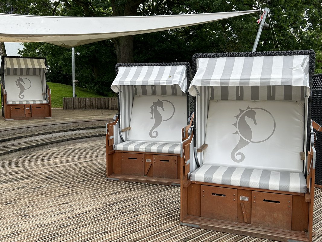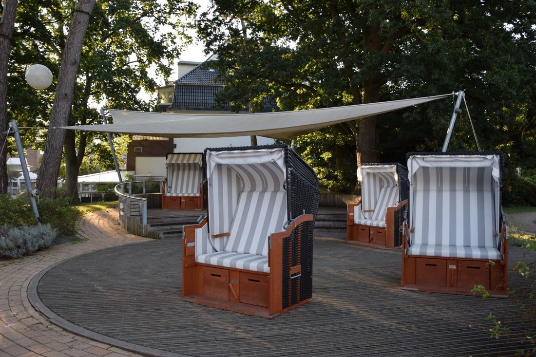 Um nach der Trauung den passenden Rahmen für erste Erinnerungsfotos, einen Sektempfang oder einfach nur die Möglichkeit zu geben, die ersten Glücksmomente in einer entspannten Atmosphäre zu genießen, ist auf der Grünfläche direkt neben dem Alten Rathaus der sogenannte „Hochzeitshügel“ entstanden. Auf einem Podest mit stilvoller Holzbeplankung sind schicke Strandkörbe für die Hochzeitsgesellschaft reserviert. Ortsbildprägende große Kiefern spenden neben Sonnensegeln zusätzlich Schatten an heißen Sommertagen. Ein schöner maritimer Rahmen, der mit nur wenigen Schritten vom Parkplatz aus zu erreichen ist und doch idyllisch im Grünen liegt.